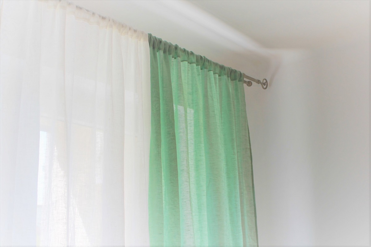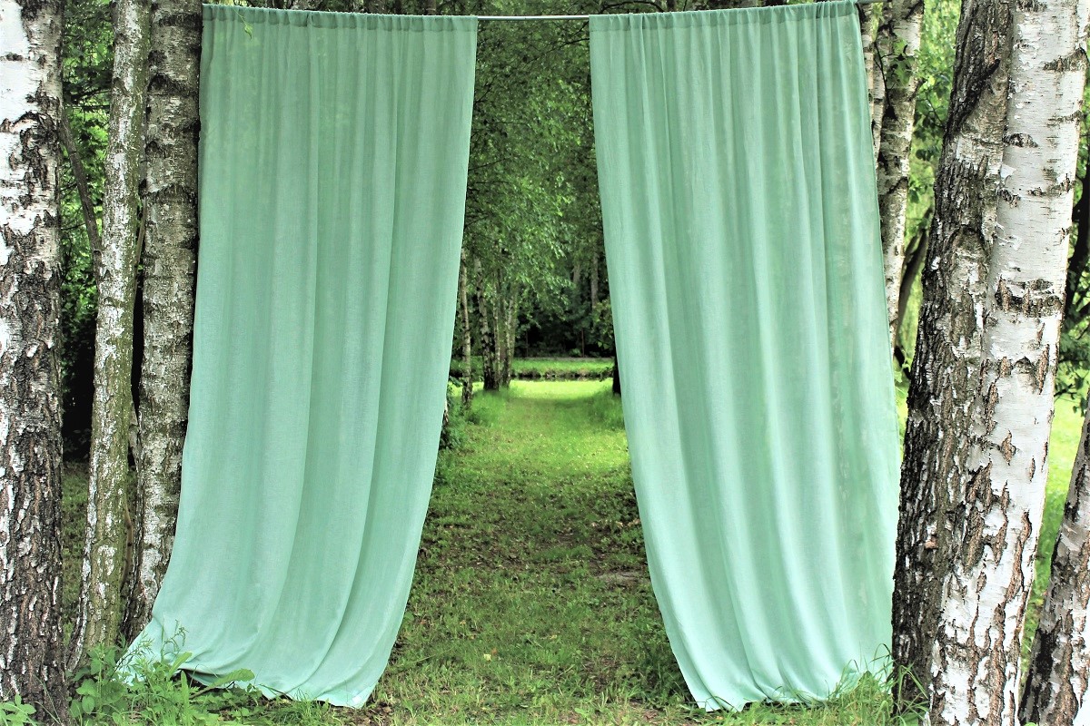 Zwiewna firanka na szelkach z cienkiej, przezroczystej tkaniny lnianej