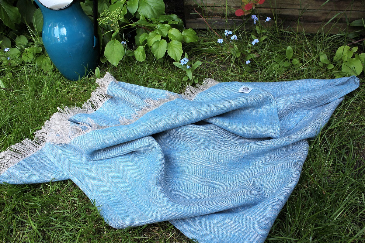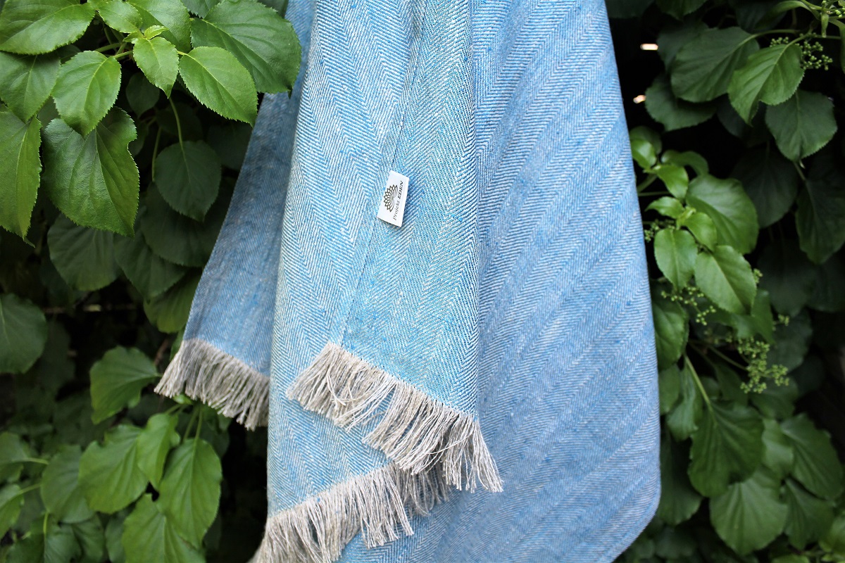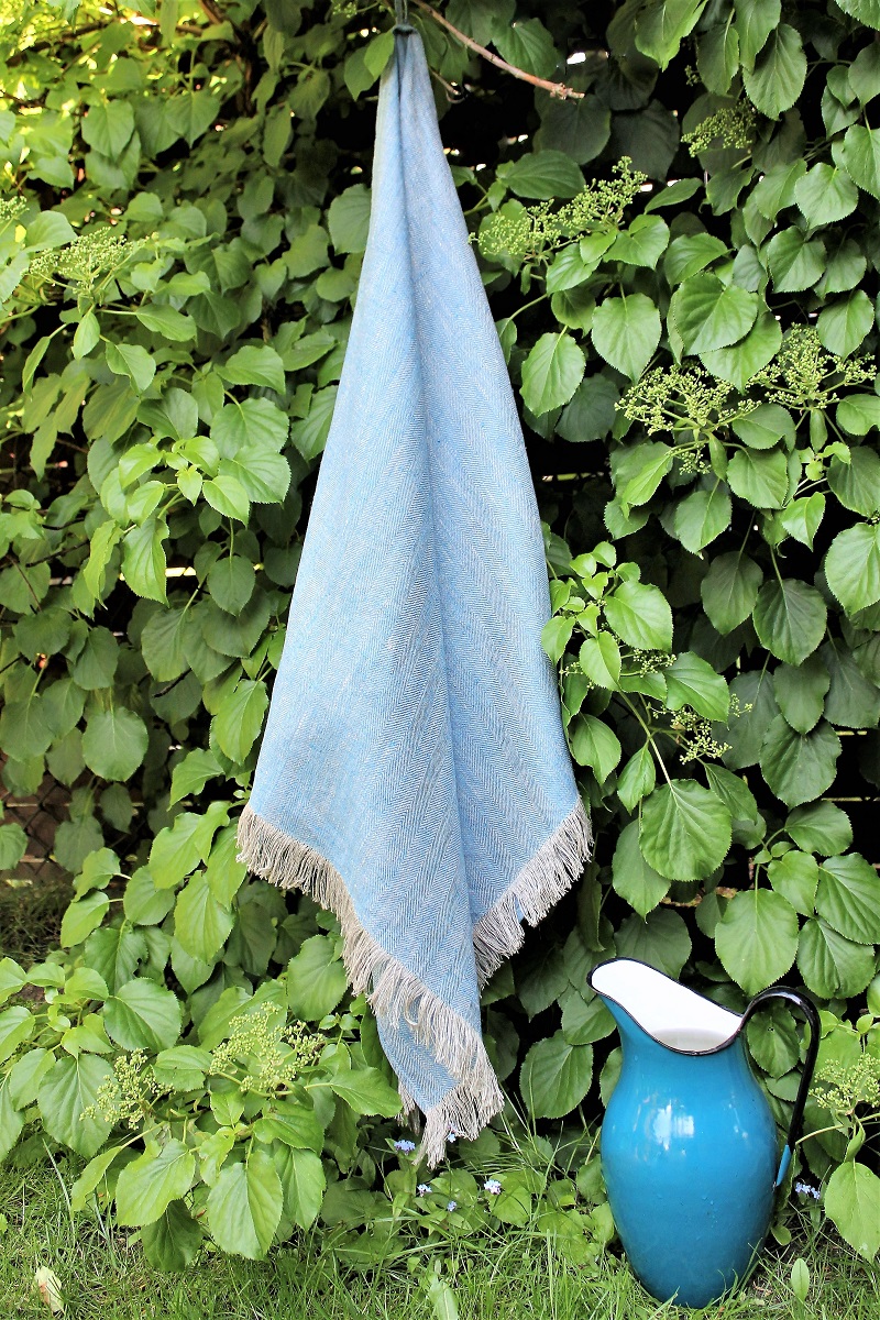 Ręcznik z tkaniny lnianej o jodełkowym splocie. Doskonale absorbuje wodę.
