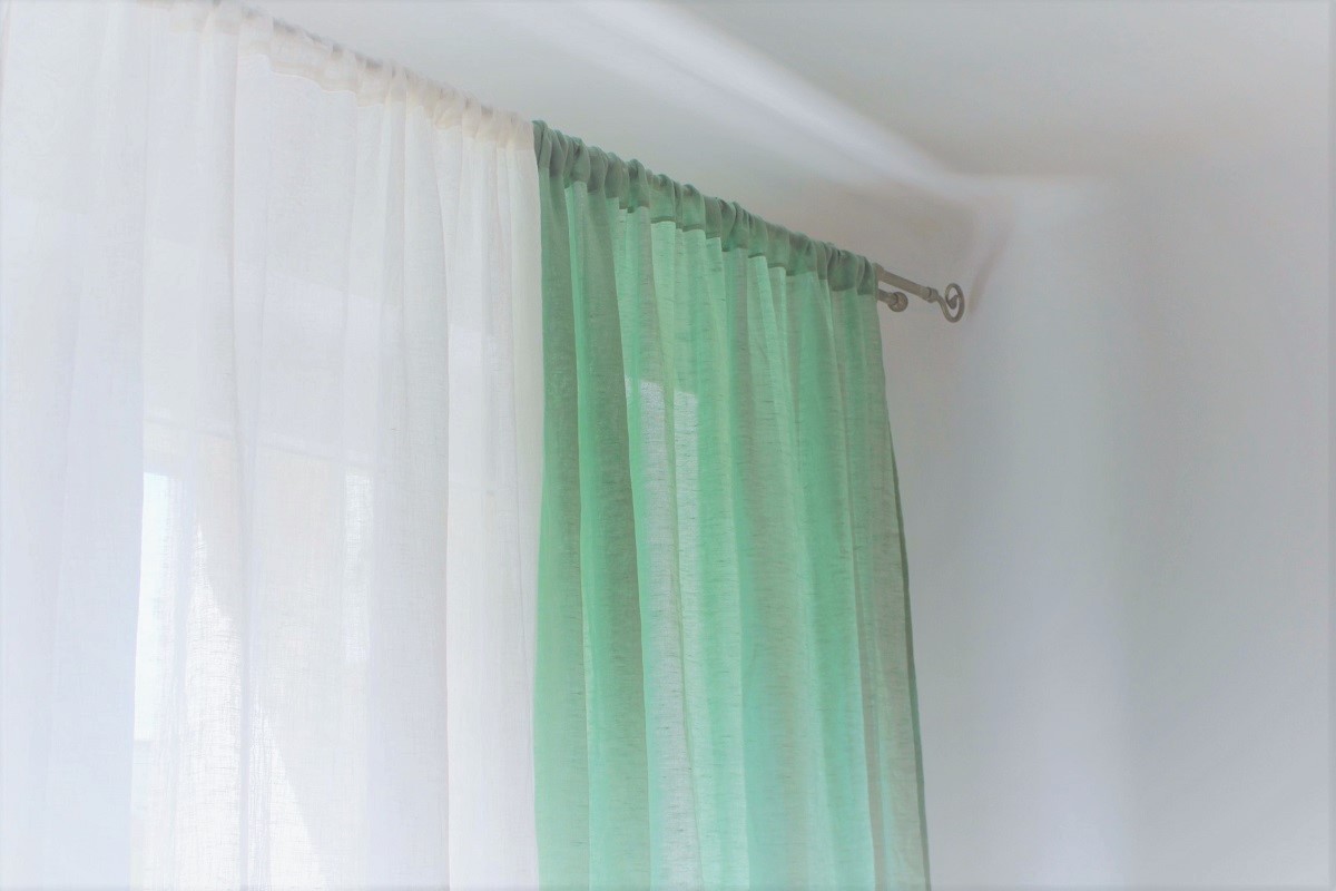 Lniano-bawełniana tkanina firankowa – Zieleń w Odcieniu Ziół | 56% Len, 44% Bawełna